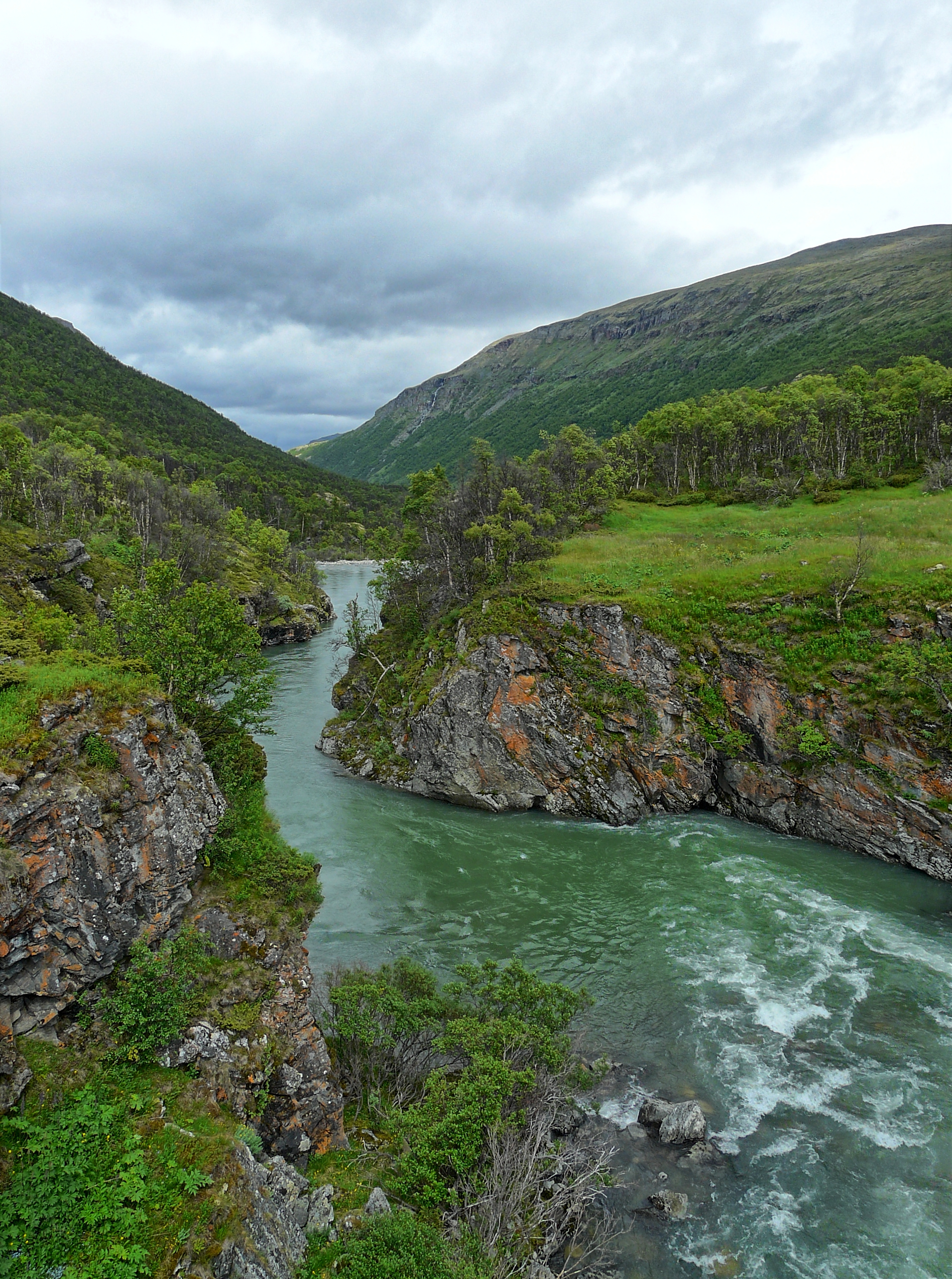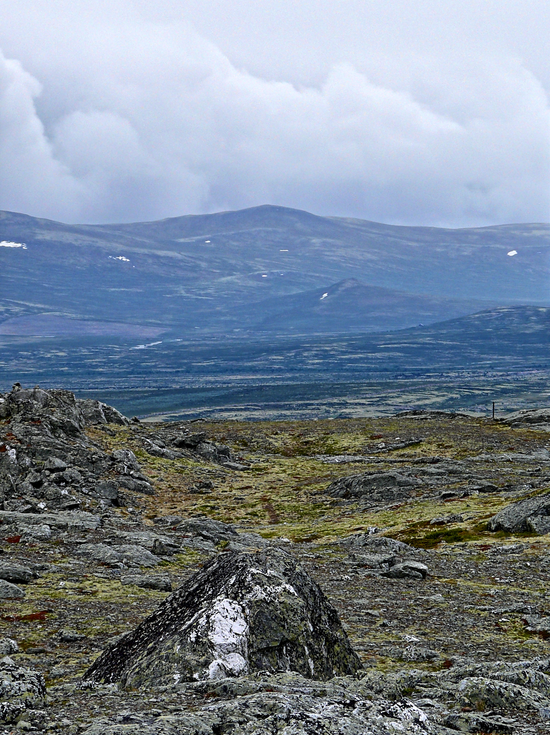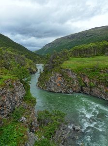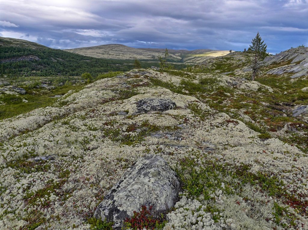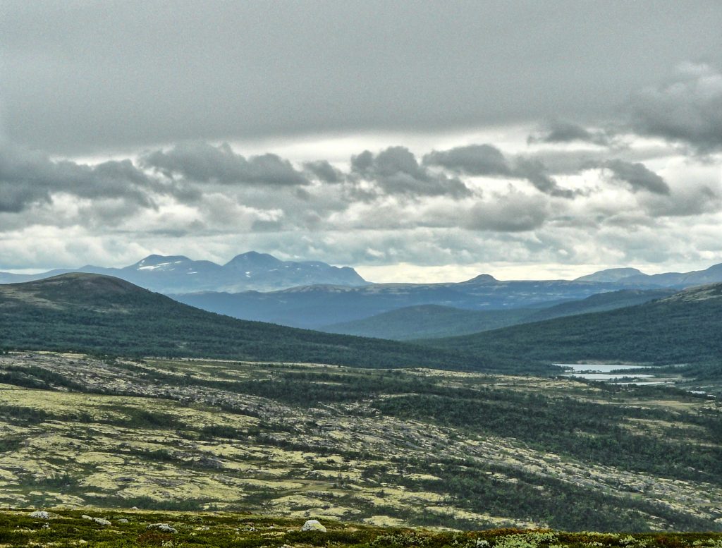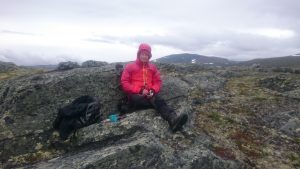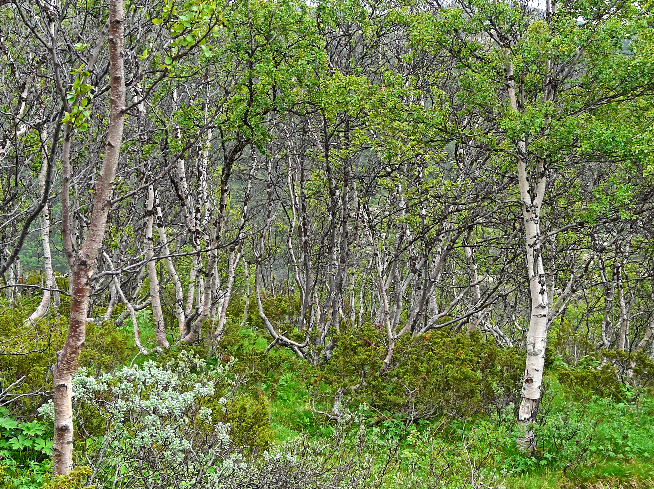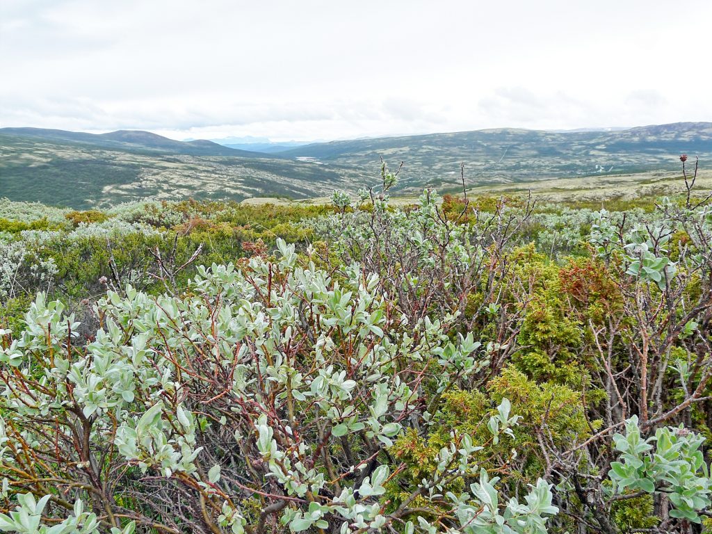 Heute ist Regen angesagt. Wir machen uns trotzdem auf dem Weg ins nahe gelegene Dovrefjell – sind ja keine Weicheier. Ausgangspunkt ist der direkt an der E6 gelegene Wanderparkplatz bei Kongsvoll. Ein paar Schritte durch einen Birkenwald und du bist total außen draußen!