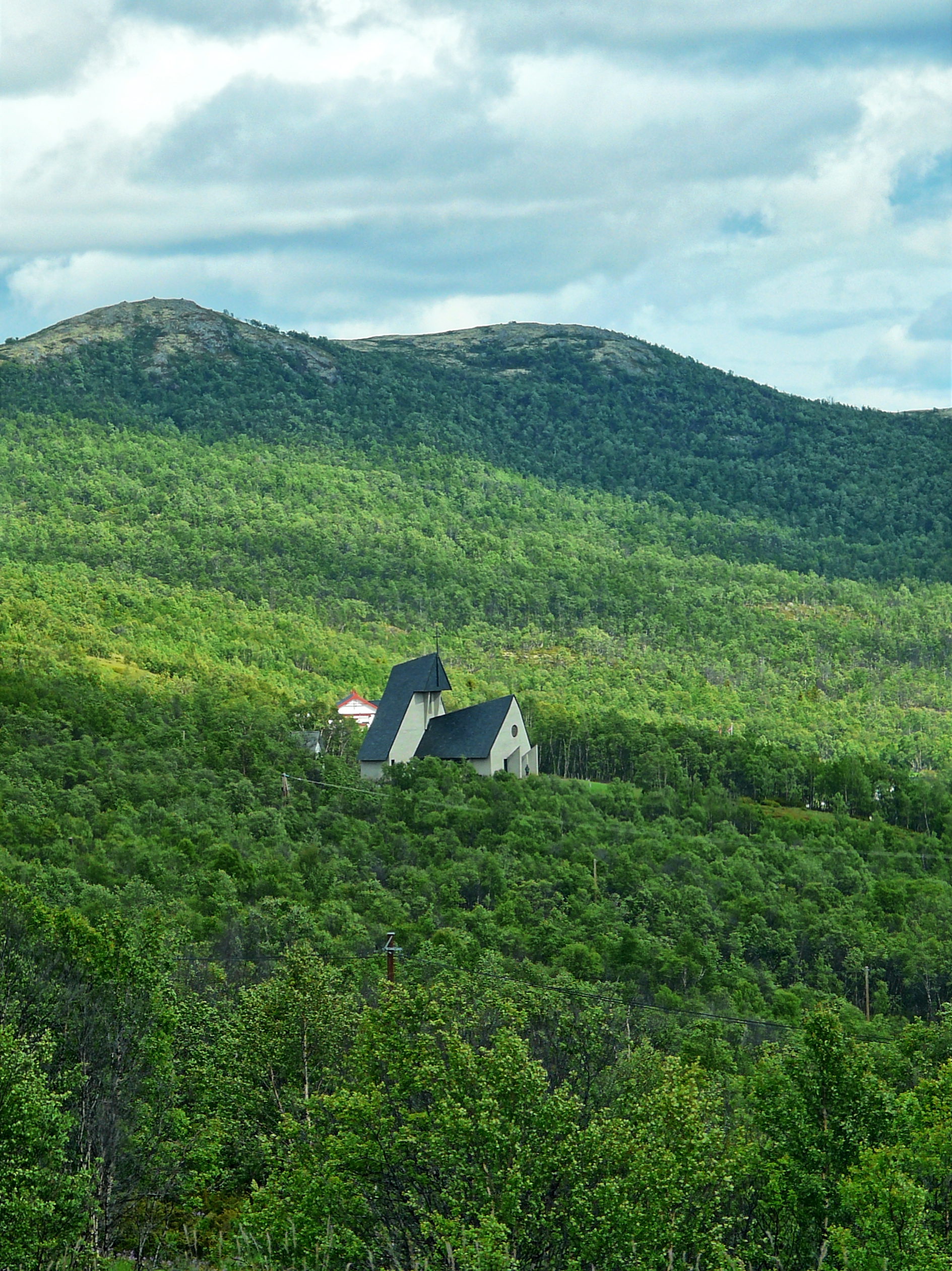 Weiter auf der E6 – schöne Kirche auf der gegenüberliegenden Hangseite –