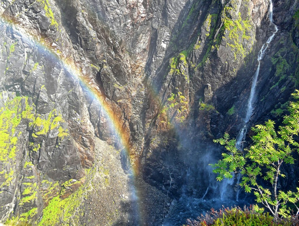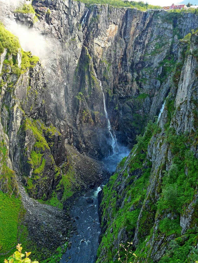 Wir wollen die Hardandervidda quasi gegen den Uhrzeigersinn umrunden. Also erst auf der RV7 weiter bis Brimnes. Auf dem Weg liegt der Voringvossen, der mit Getöse über die Abbruchkante in eine Schlucht stürzt.–