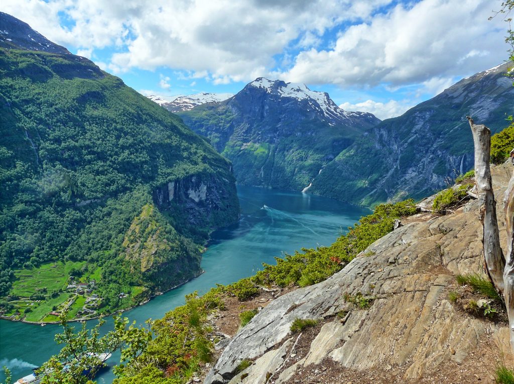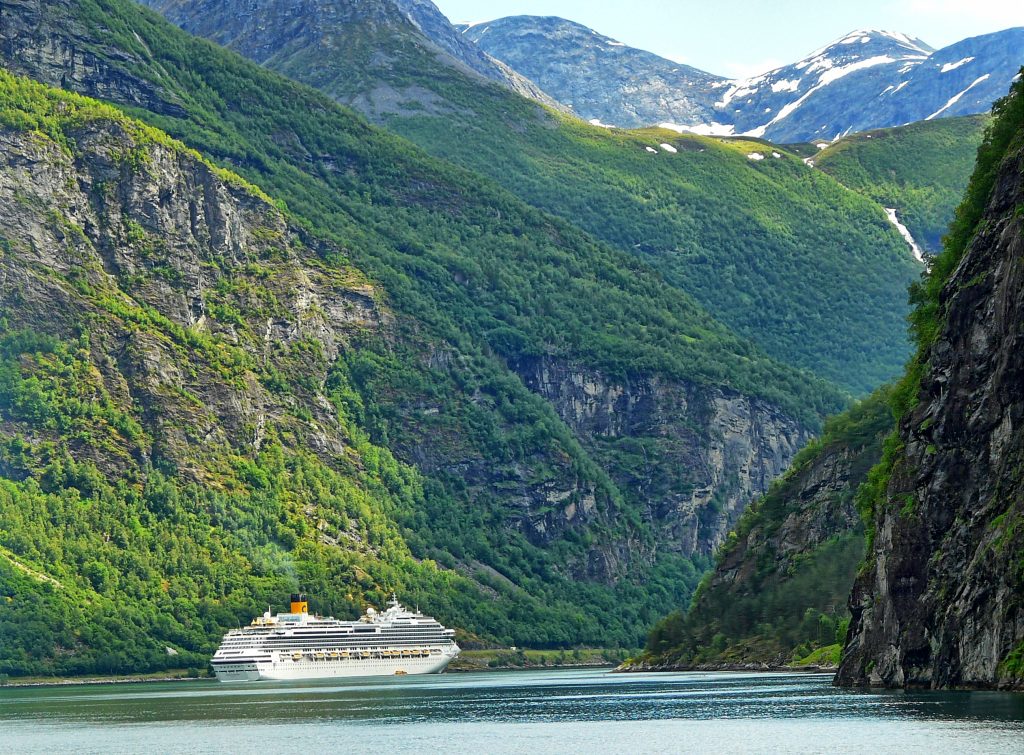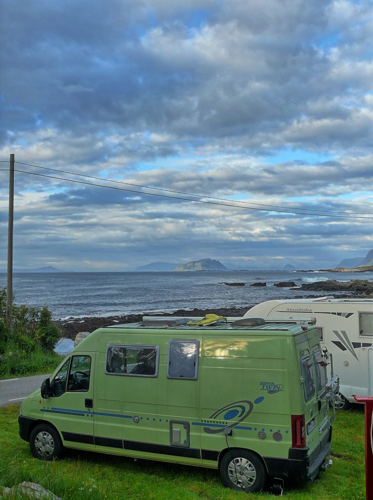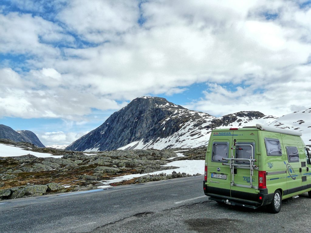 Wie geplant machen wir uns auf den Weg nach Hellesylt, wo wir mit der Fähre nach Geiranger durch den gleichnamigen berühmten Fjord schippern wollen. Tatsächlich ist dort noch kein Andrang und so beschließen wir, dass wir – anders als geplant – das Basislager doch mitnehmen. Kommt preislich fast auf’s selbe heraus: 2 Personen hin und zurück oder 1 WoMo mit Besatzung einfache Fahrt.
