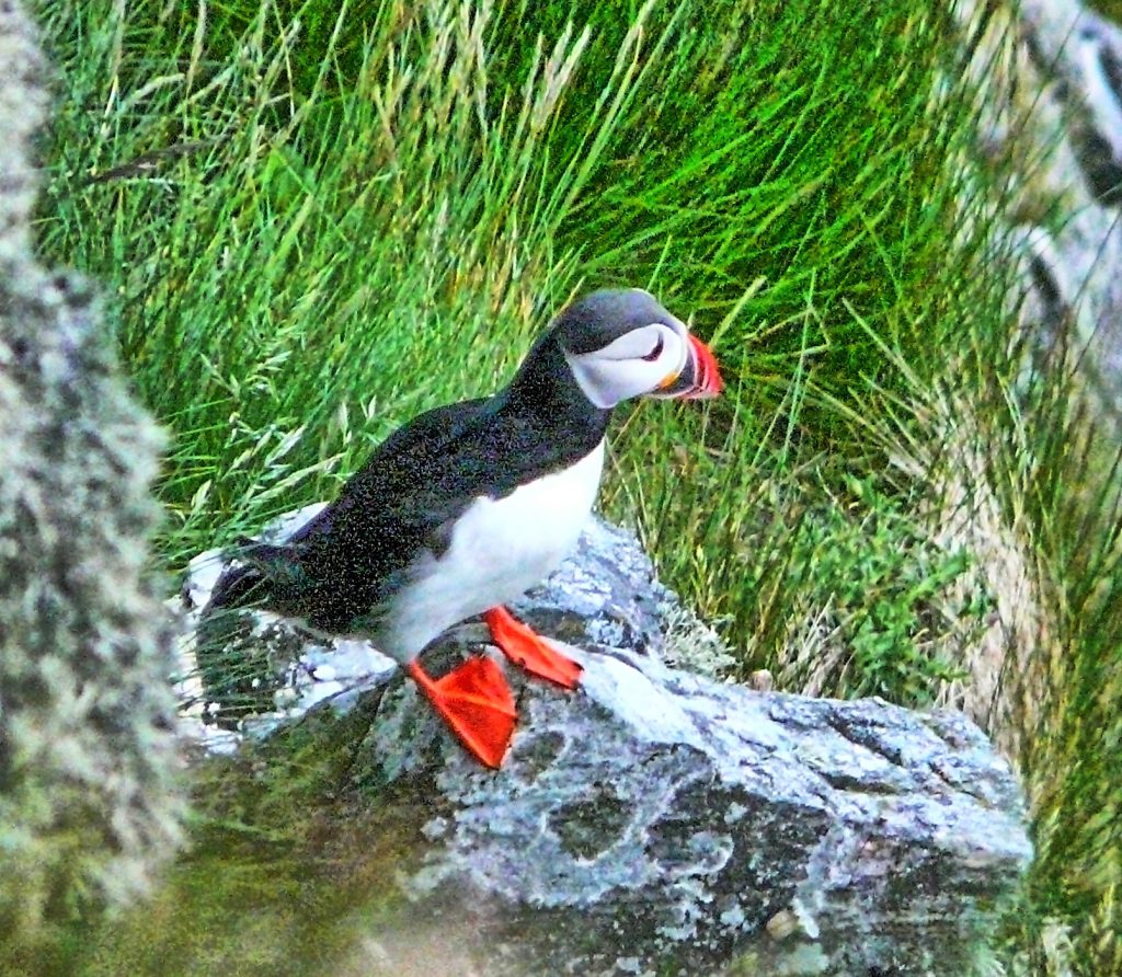 Nach also kurzweiliger Fahrt kommen wir so gegen 20 Uhr an, bekommen an der Campingplatzrezeption erst mal eine höfliche Aufforderung, dass wir uns doch bitte alsbald auf den Weg machen sollten zu den Vogelfelsen. Dort wäre um diese Zeit der Papageitaucher unterwegs ist.