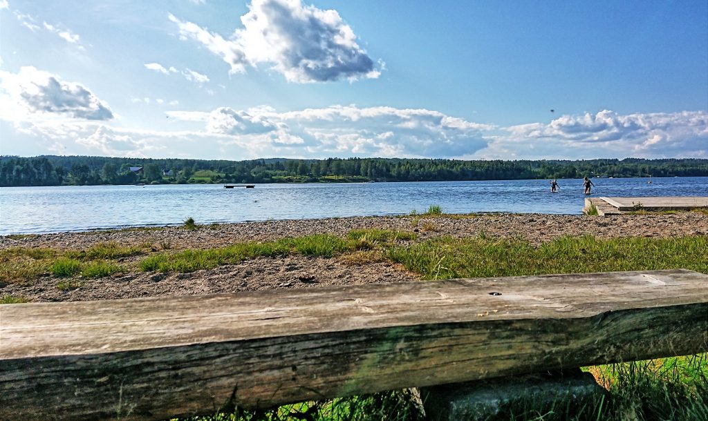 Dann die Frage: wo übernachten wir eigentlich? Auf der Karte machen wir einen Parkplatz nahe des Strandes am Tyrifjord bei Vikersund aus.