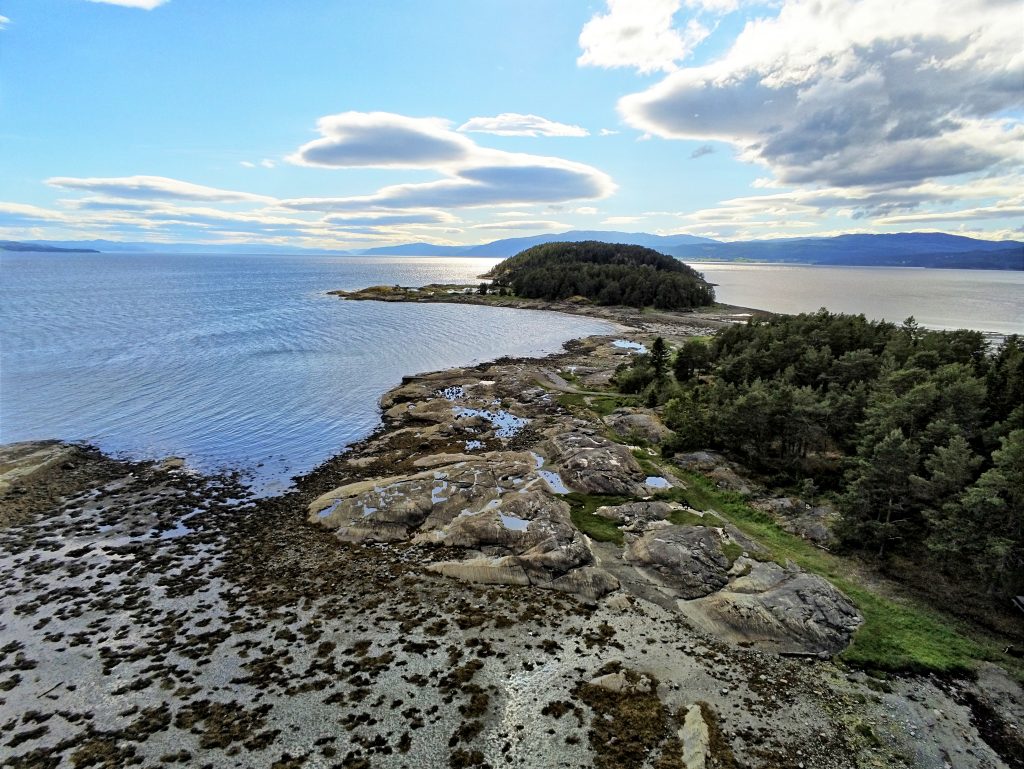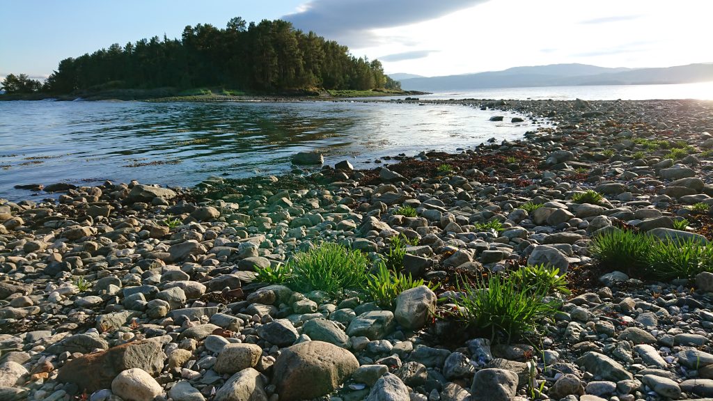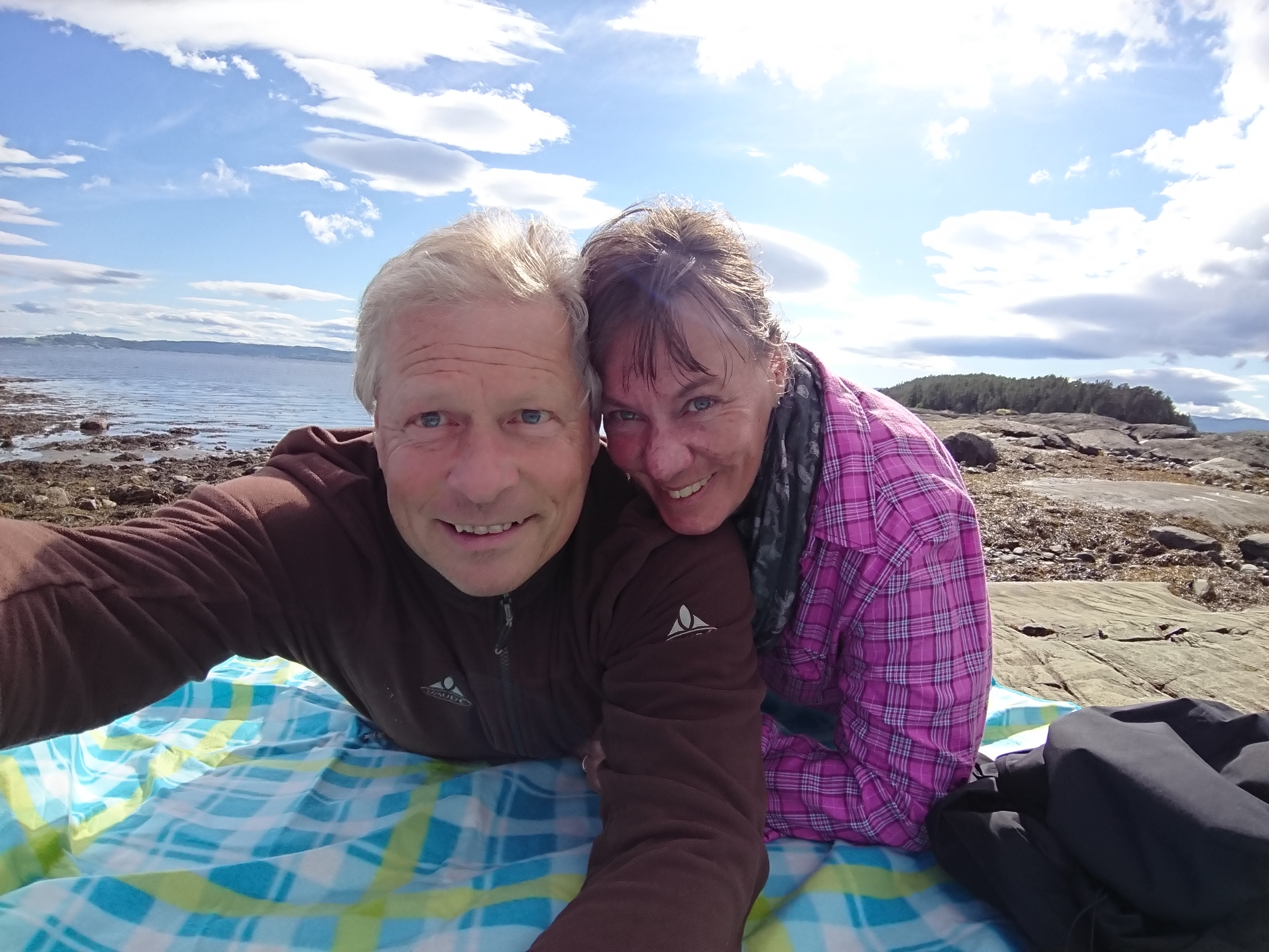 Nach dem Regen von heute Morgen, genießen wir die Sonne auf den angewärmten Felsen am Fjordufer (Beitstadfjord) um so mehr.