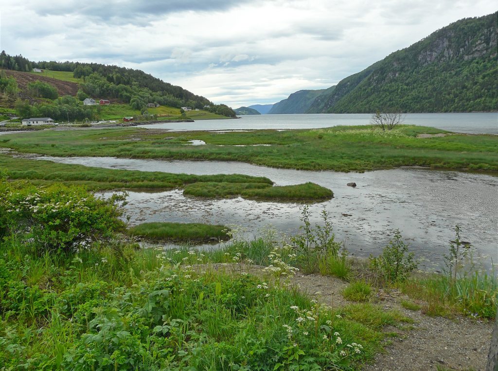 Auf der E39 ging es dann sauber vorwärts Richtung Trondheim. Und auch das Wetter besserte sich. Blick zurück auf den Korsnesfjord.