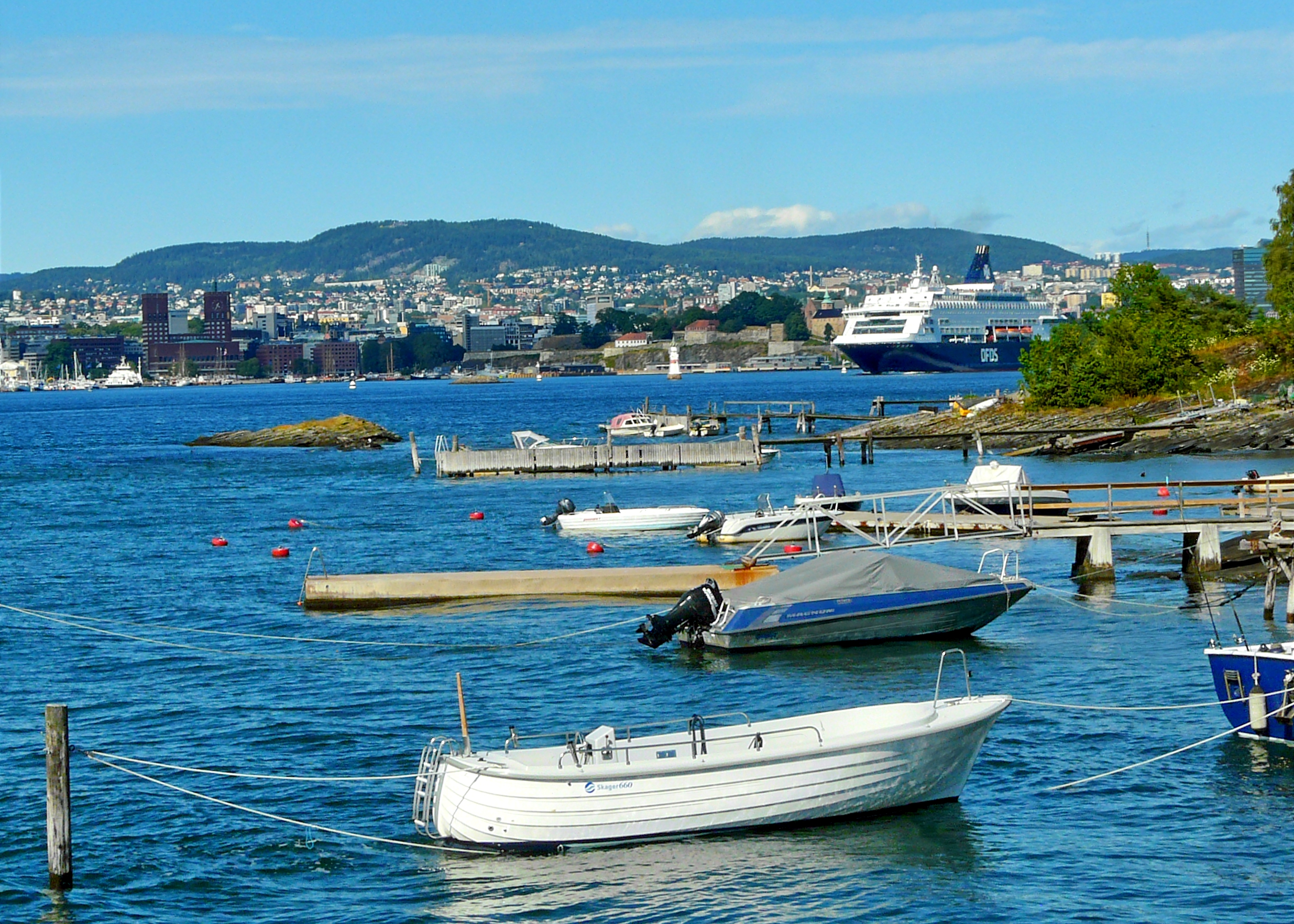 Machen eine Fahrt mit unserem Tagespass raus auf die vorgelagerten Inseln – mit Blick dann von da aus auf Oslo.–