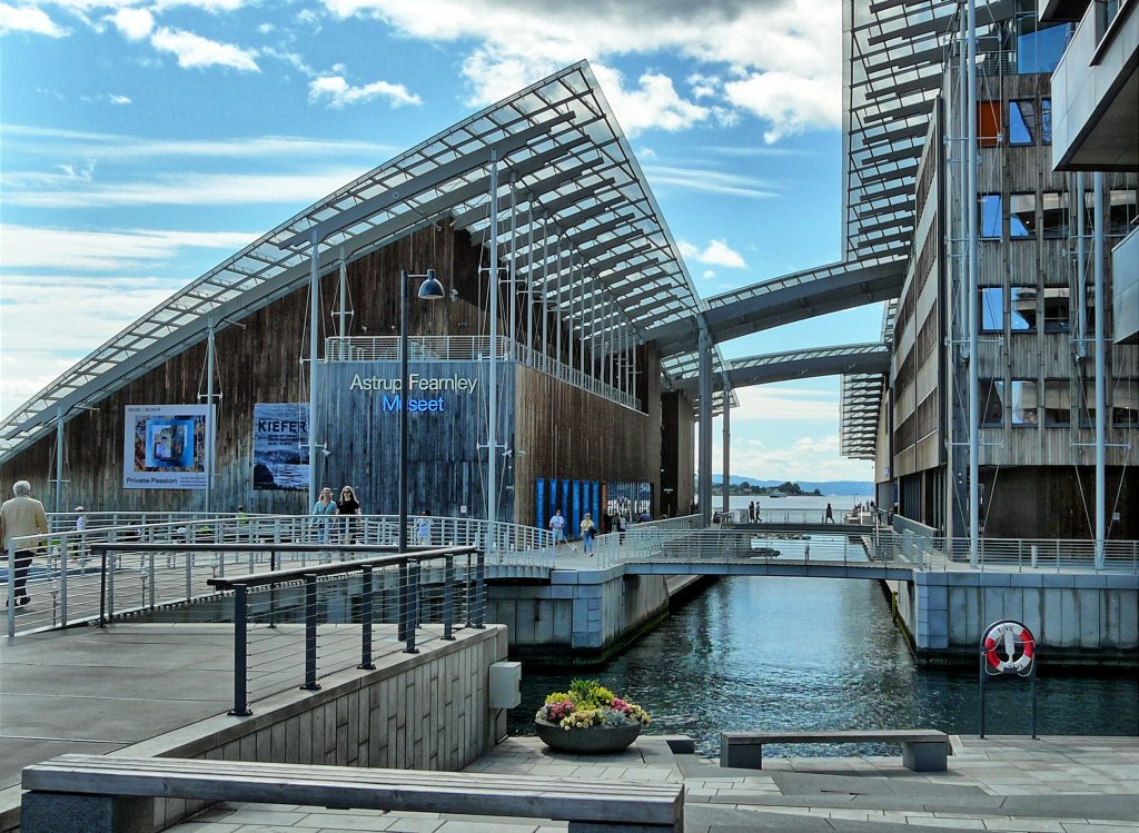 Nachdem wir noch bis 16 Uhr am Campingplatz stehen bleiben dürfen, entscheiden wir uns, die Zeit bis dahin noch für kulturelle Zwecke in Oslo zu nutzen. Unsere Wahl fällt auf das Astrup Fearnley Museum für moderne Kunst.