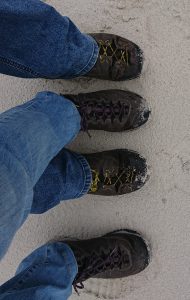 Und so bekommen die Schuhe wenigstens ein bisschen Bewegung am Strand.