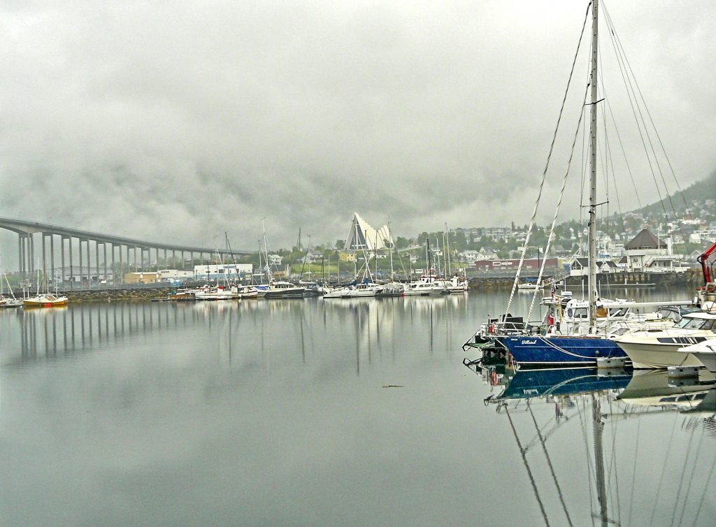 Heute besuchen wir Tromsø. Schon bei der Anfahrt über die E8 schüttet es teiweise wie aus Eimern. Wenn die Norweger bei ihrer Wettervorhersage schon mal ein Ausrufezeichen spendieren, muss das was heißen 🙂