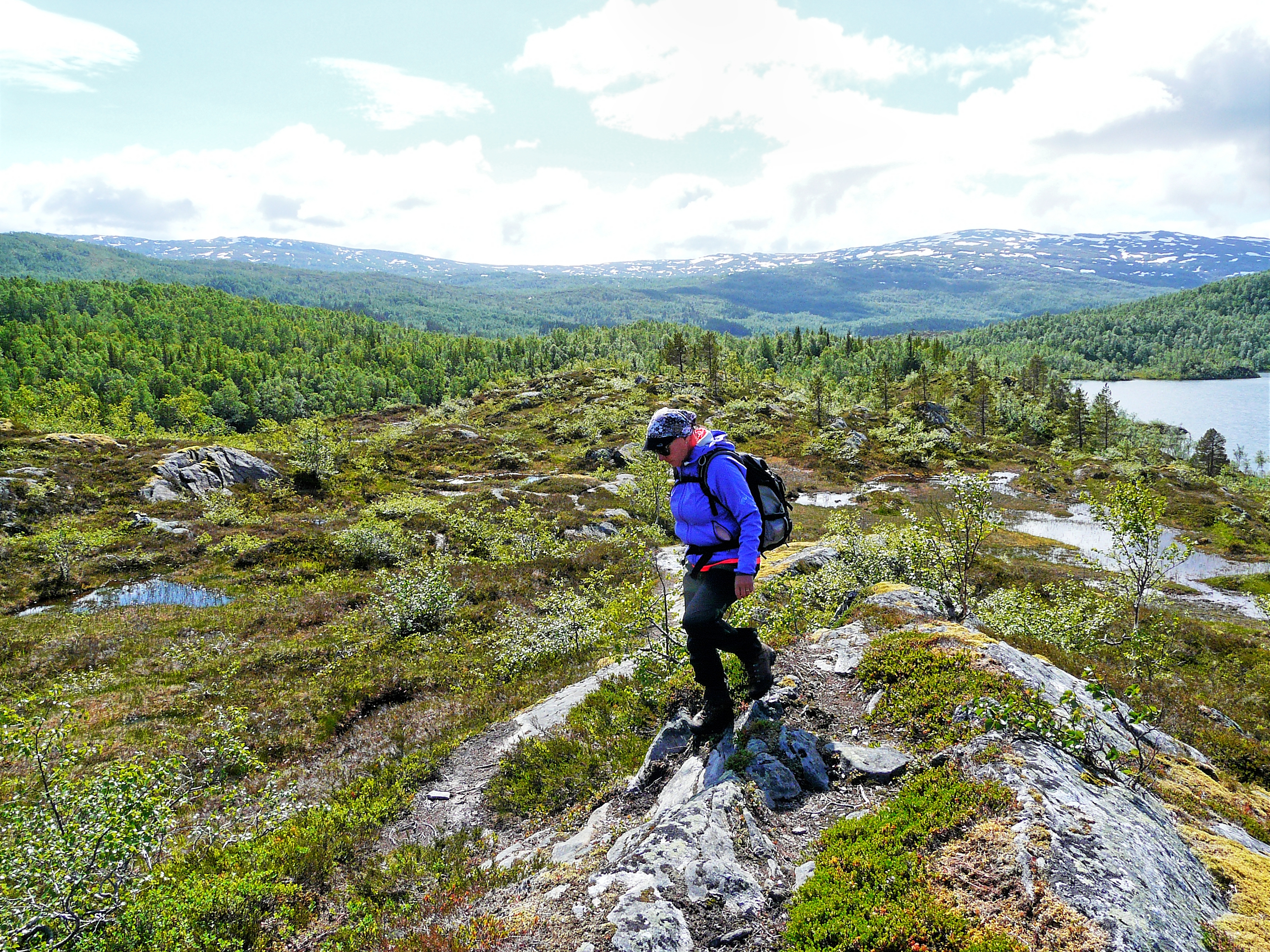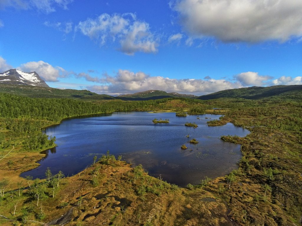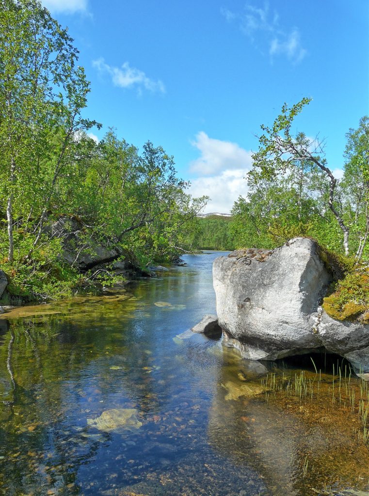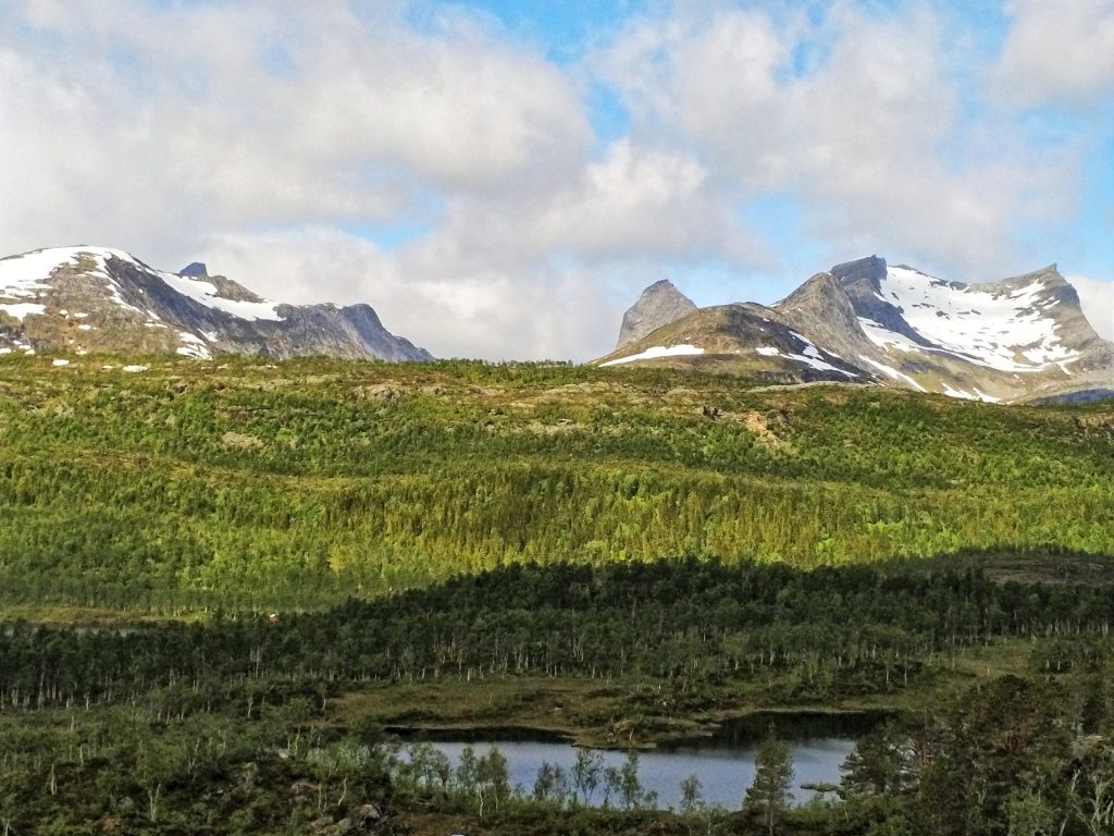 Wie gestern erhofft, wachen wir bei einem Sonne-Wolkenmix auf. Der geplanten Tour in den Nationalpark Sjunkhatten steht also nichts im Wege. Sehr schön ist es hier!