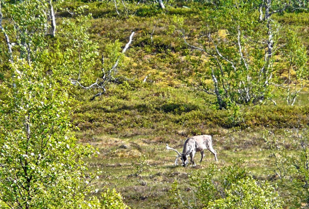 Am gegenüberliegenden Hang grast friedlich ein stattliches Rentier