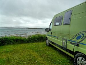 Wir stehen also hier im heavy rain und bei (gemeldeten) 9 m/s Wind = waagrechte kalte Dusche 🙂 wie wir beim Abendspaziergang bemerken.