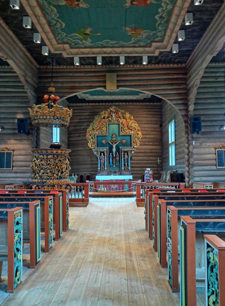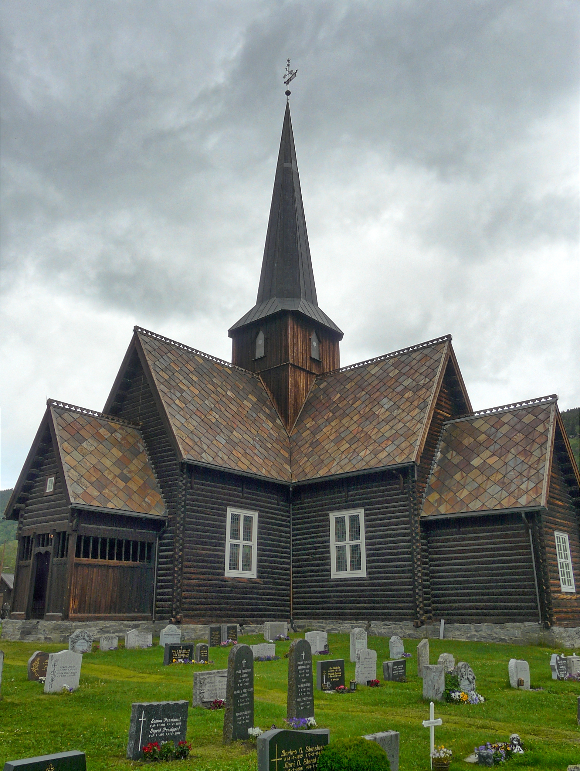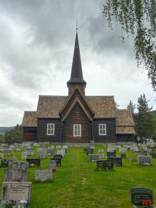 Wir biegen bei Sjoa auf die 257, die uns nach Heidal führt. Dort sehen wir uns 2 Kirchen an, die quasi nebeneinander stehen.