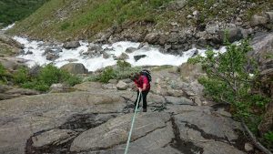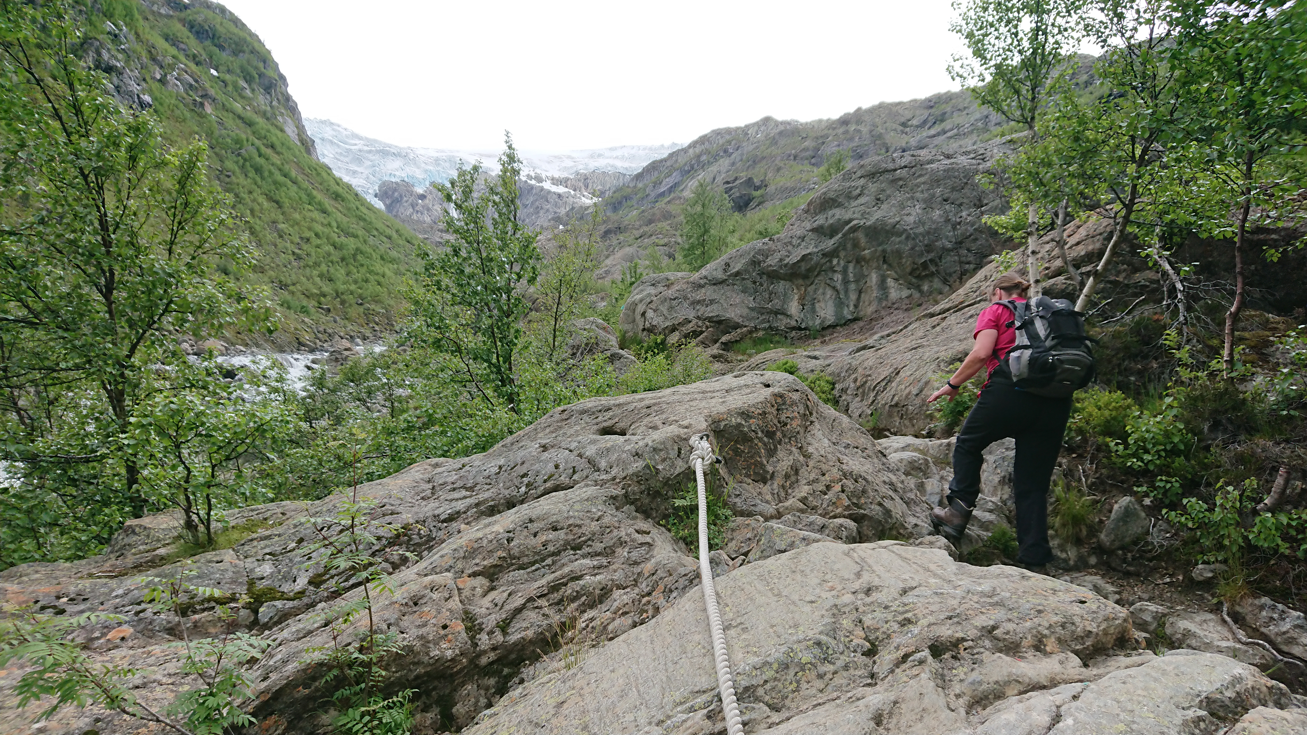 Leider mussten wir kurz vorm Gletscher umdrehen da es zu regnen begann und die glatten Felsen drohten rutschig zu werden.