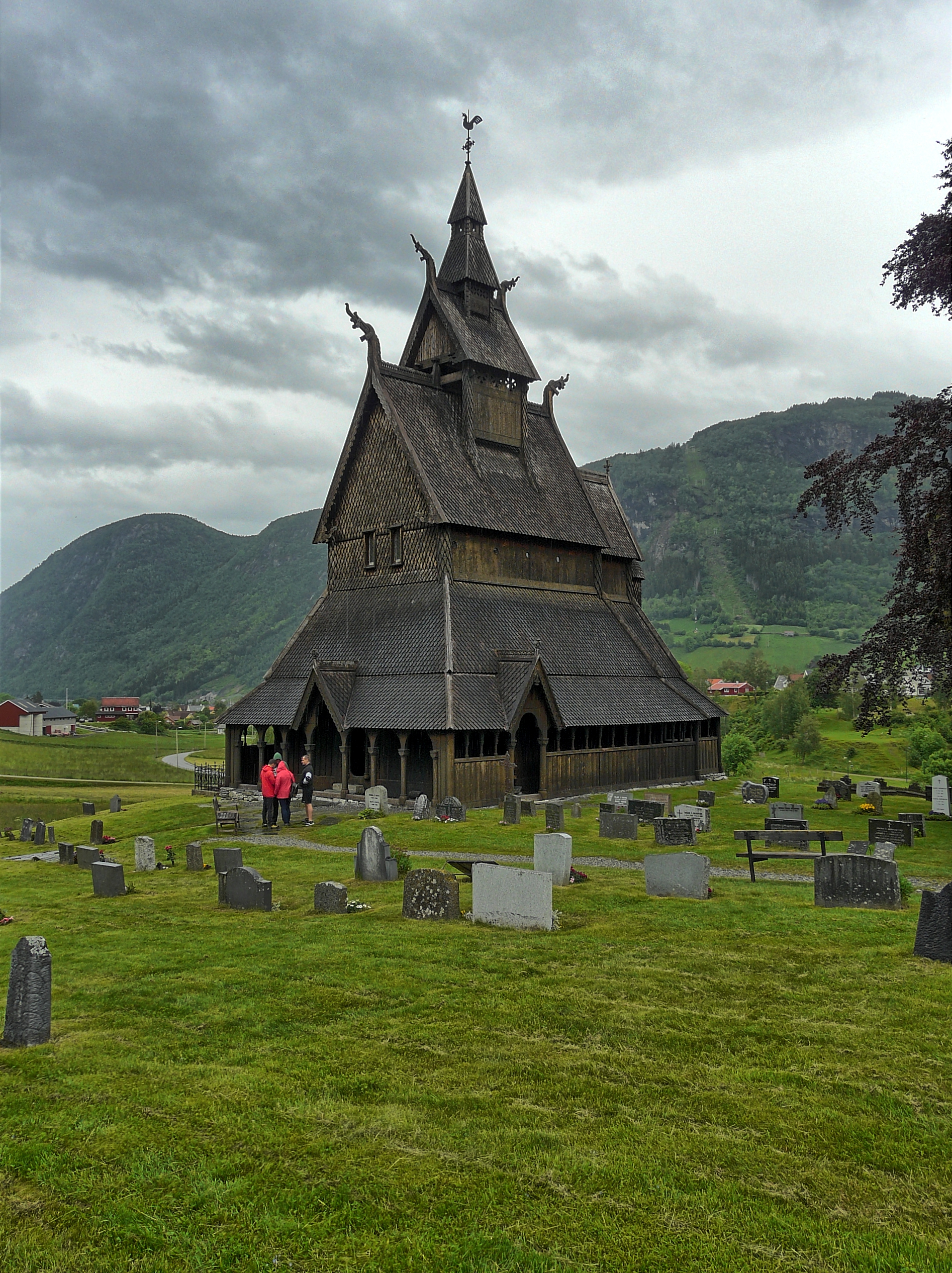 Herunter vom Vikafjell nach Vik, wo eine der wenigen erhaltenen Stabkirchen besichtigt werden kann. Erbaut 1140!