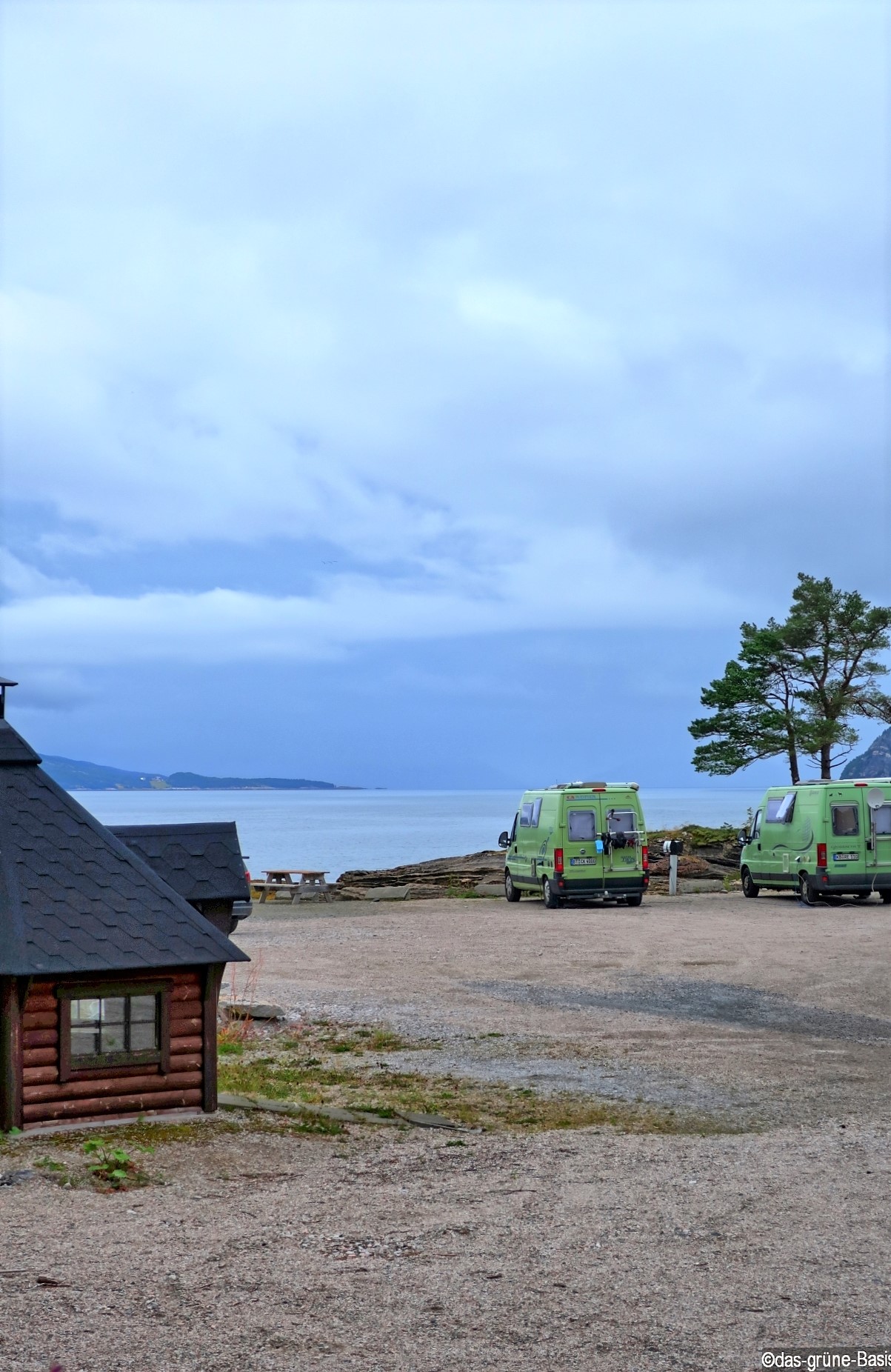 Da kommt es dann auch zur Begegnung der grünen Art: ein fast baugleiches grünes Basislager steht bereits am Stellplatz. Wir parken gleich daneben und haben ein nettes Gespräch mit dem Besitzer – ebendalls aus Bayern.