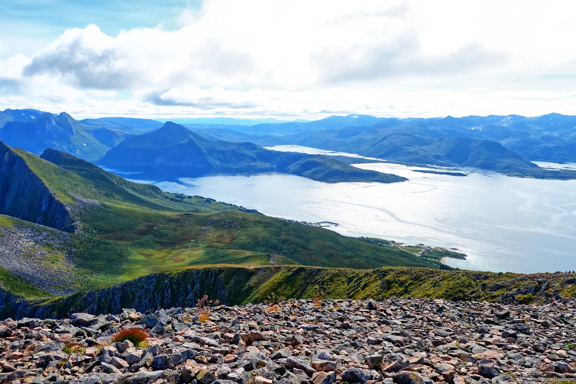 Und so verschlägt es uns auf die Halbinsel bei Stonglandseidet an der Südküste von Senja. Eine Abendtour beschert uns dann den zweiten Gipfelgenuss vom Leirpollfjellet aus.