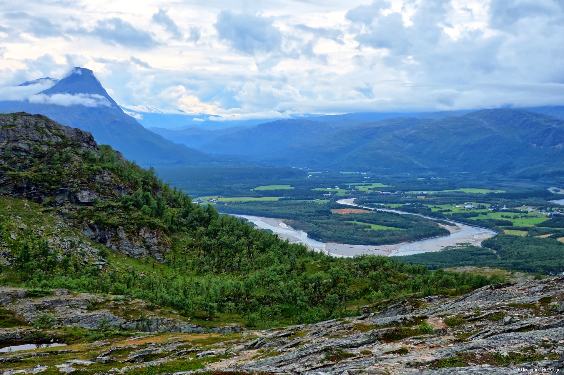 Direkt in den Reisa-Nationalpark wollen wir heute dann doch nicht. Es hat sich eine Wetteränderung angekündigt. Nachmittags soll es regnen. Um vor Ort noch etwas zu unternehmen bietet sich der Baiski an. Ein Aussichtsberg, von dem aus man zumindest einen Blick auf den Reisa werfen kann (Hintergrundbild). Der Gipfel ist schnell erreicht und wir gehen weiter Richtung Jyppyrä (so ein schöner Name!), der deutlich höher ist. Es geht hierzu über eine schöne Hochfläche.