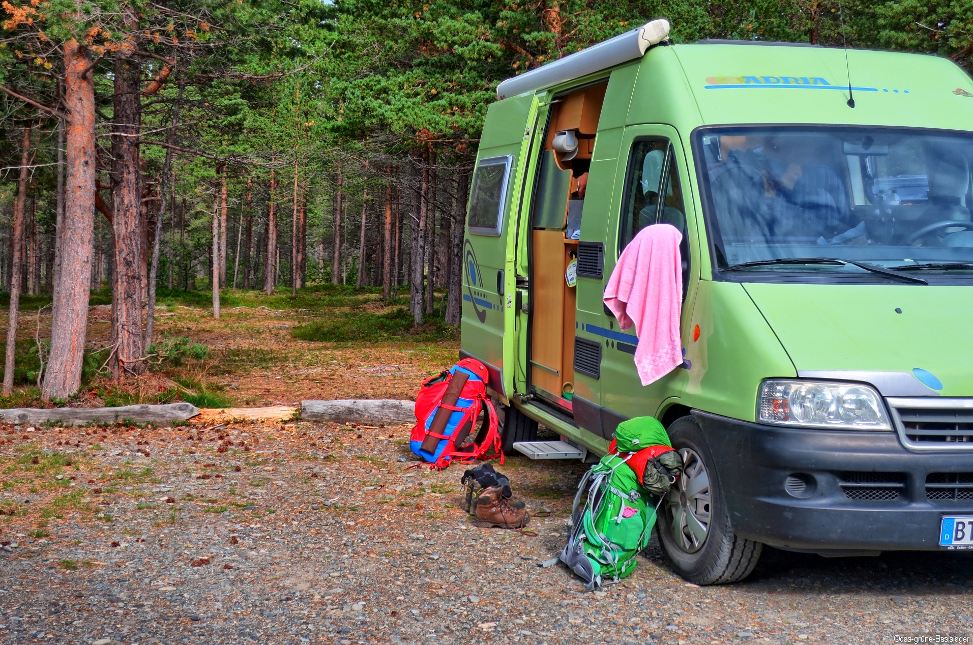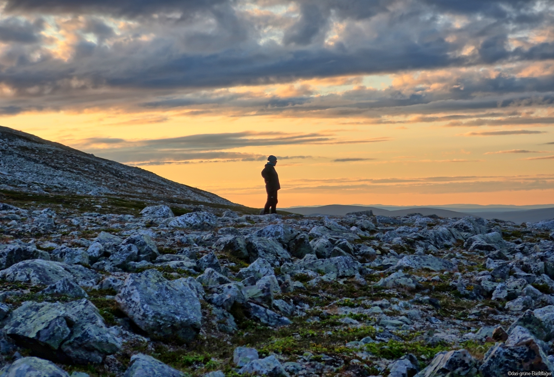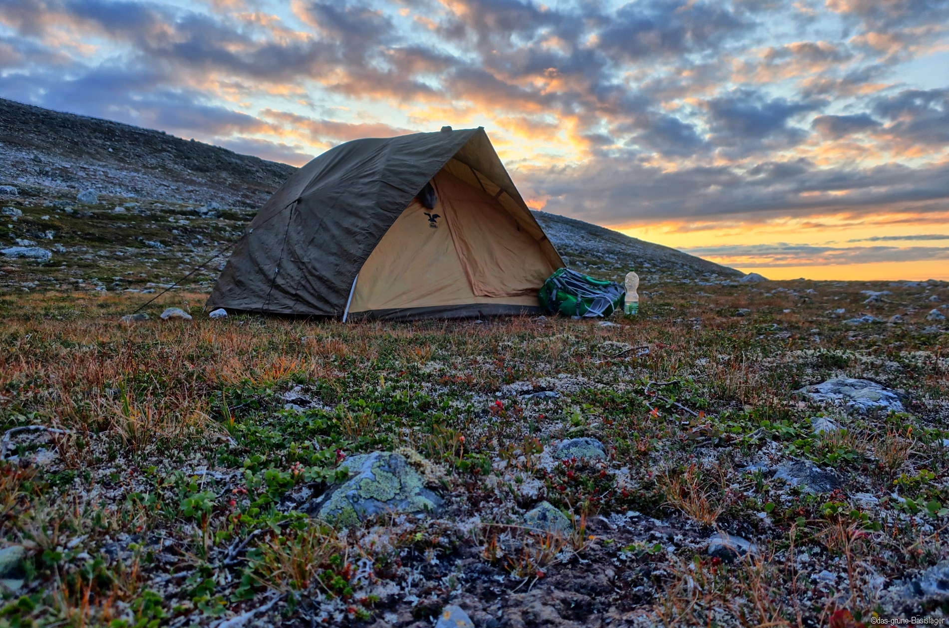 Für heute haben wir uns überlegt, dass wir mal das Material testen könnten. Das Neue (zB. Isomatten) , das Alte (zB.Zelt) und das ganz Alte (uns selbst 🙂 )Angedacht haben wir eine Tour zum Stuorra Binalvarri im nahen Stabbursnes Nationalpark. Der erste Test ist schon die Anfahrt zum Wanderparkplatz über die gut 6 km sehr rumpelige Schotterpiste. Dann Mittagmachen und Packen.