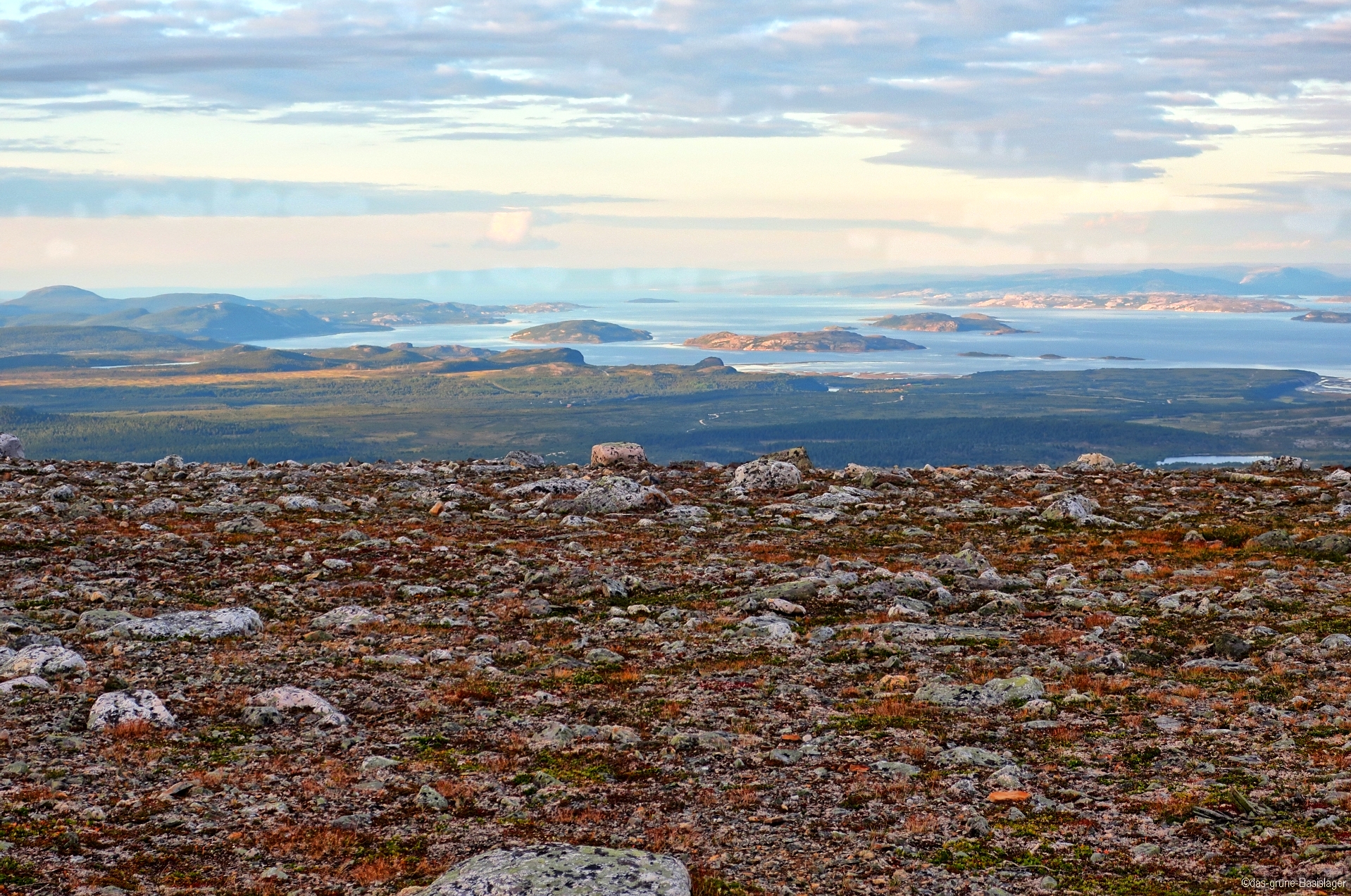 Von hier aus haben wir – noch im letzten Tageslicht – einen genialen Blick hinunter in den Nationalpark und auch auf den Fjord