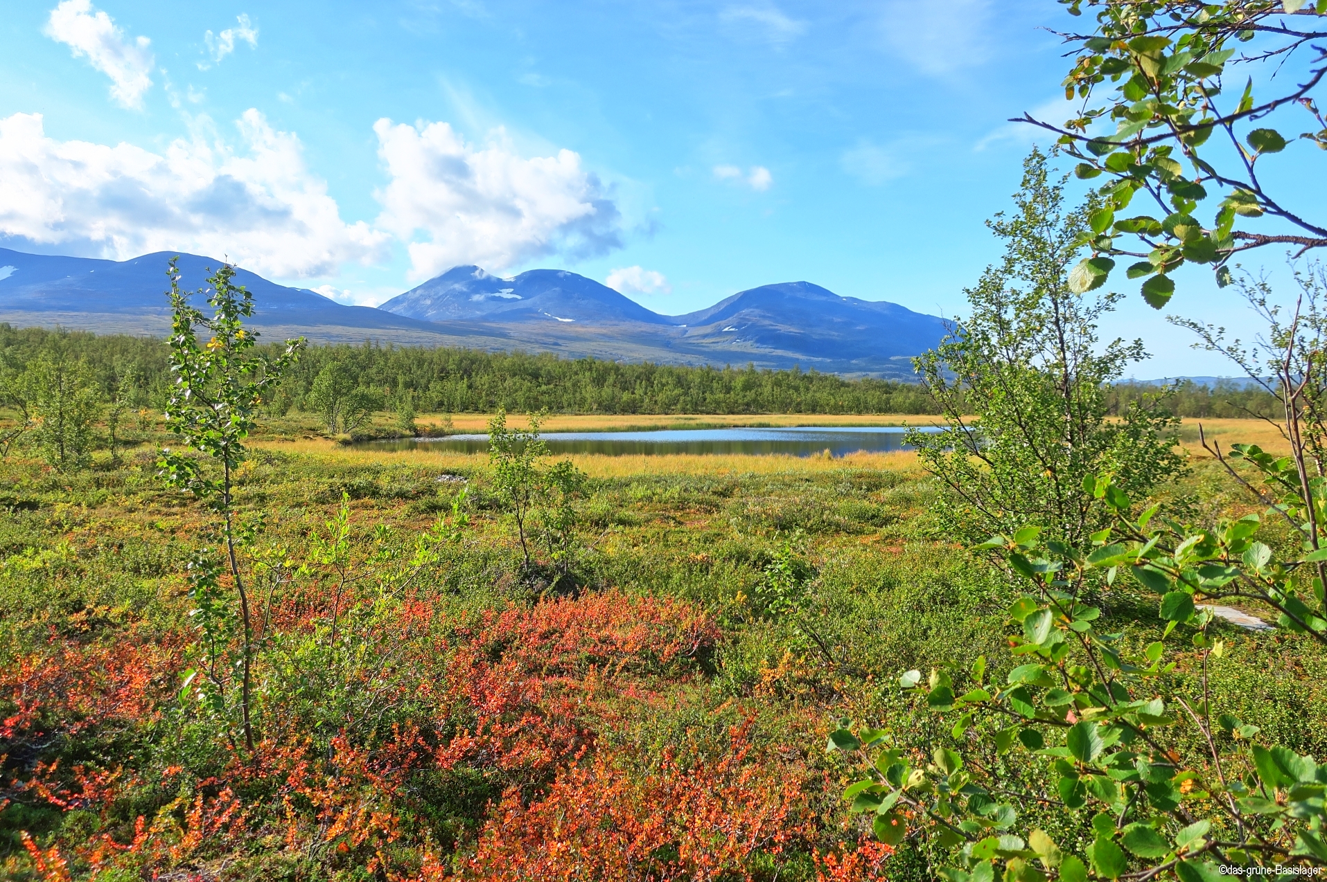 Unsere heutige Rundtour starten wir am Abisko-Infocenter. Sie führt uns zunächst ostwärts aus dem Naturpark hinaus. Genauer gesagt, durch niedrigen Birkenwald und sumpfiges Gelände zum Paddus. Das ist ein kleiner Hügel in der eher flachen Landschaft – einer alten Kultstätte der Sami.