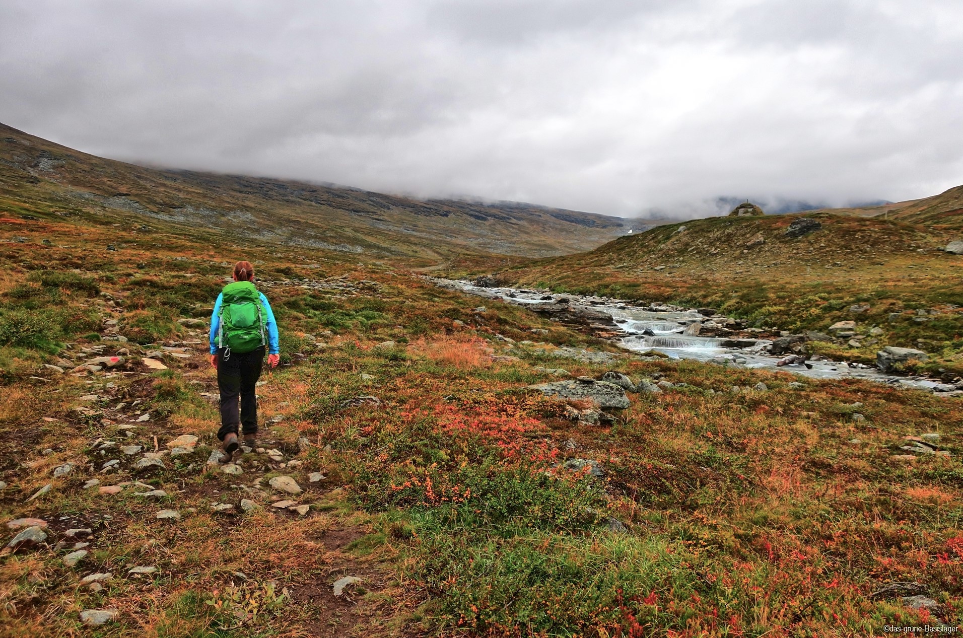 Für heute haben wir uns eine ordentliche Tour vorgenommen. Wir gehen auf den Noulja (1.164 m). Das ist der stattliche Berg, der direkt an der E10 und dem Abisko-Touristcenter liegt. Wir gehen jedoch im Örtchen Björkliden los. Das Wetter ist so lala – keine Sonne, teils tiefhängende Wolken und vorbeiziehende Nebelschwaden. Aber es bleibt trocken.