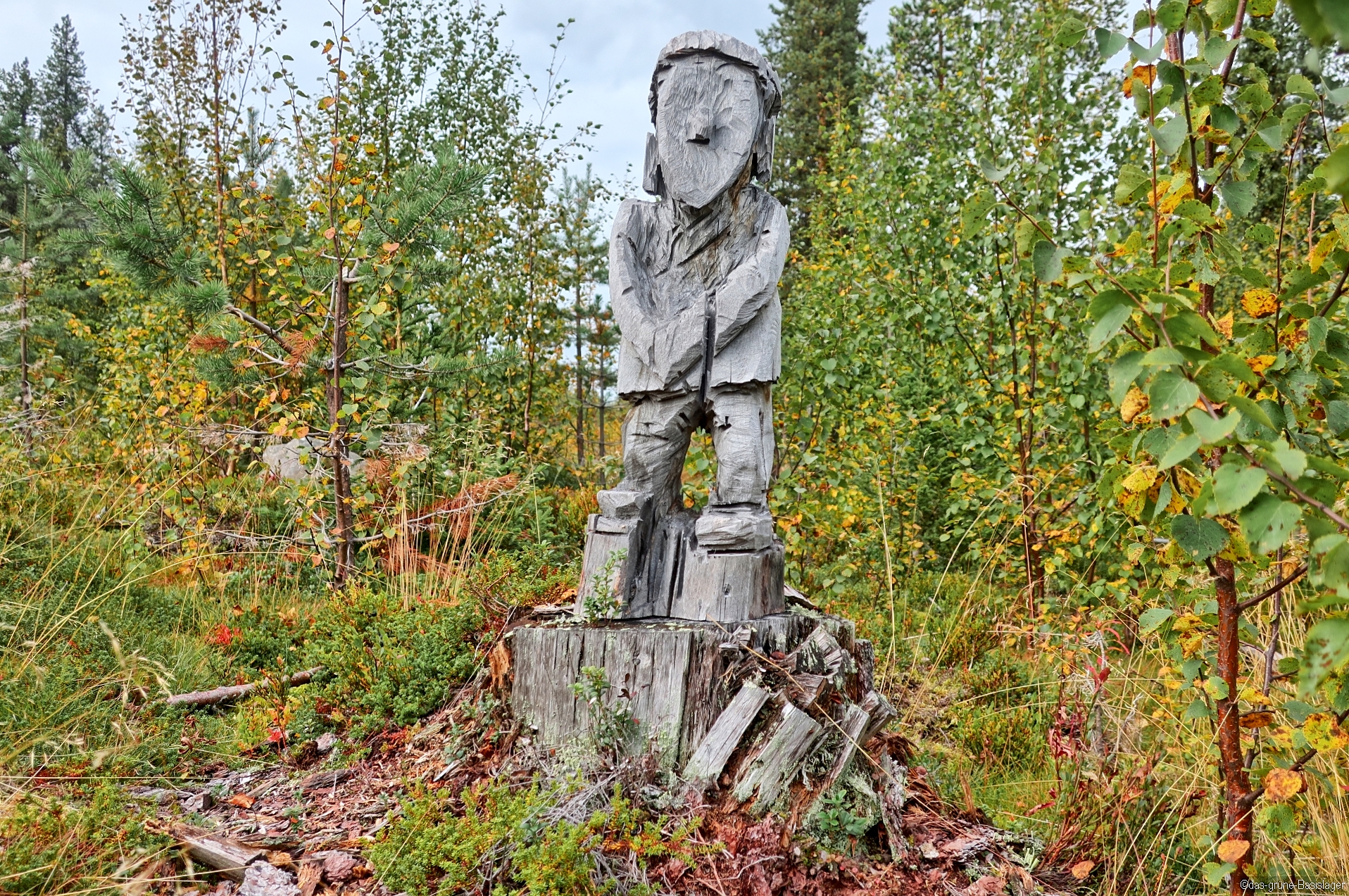 Nun geht es dann aber weiter auf der E10/E45 Richtung Gällivare. Wir machen jedoch bereits nach ca. 60 km Quartier auf einem Wanderparkplatz unweit der E10 bei Skaulo. Schnell die Schuhe an und los. Wir werden von diesem Zeitgenossen hier begrüßt 🙂