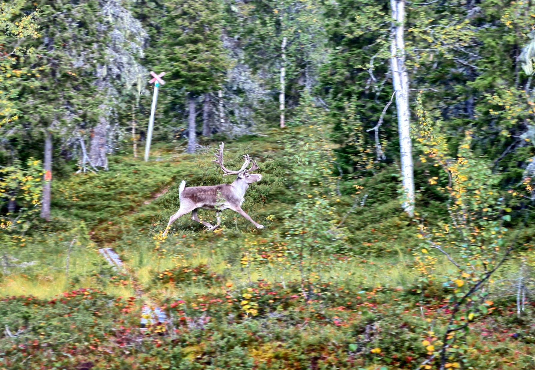 Ein kleine Herde Rentiere kreuzt unseren Weg.