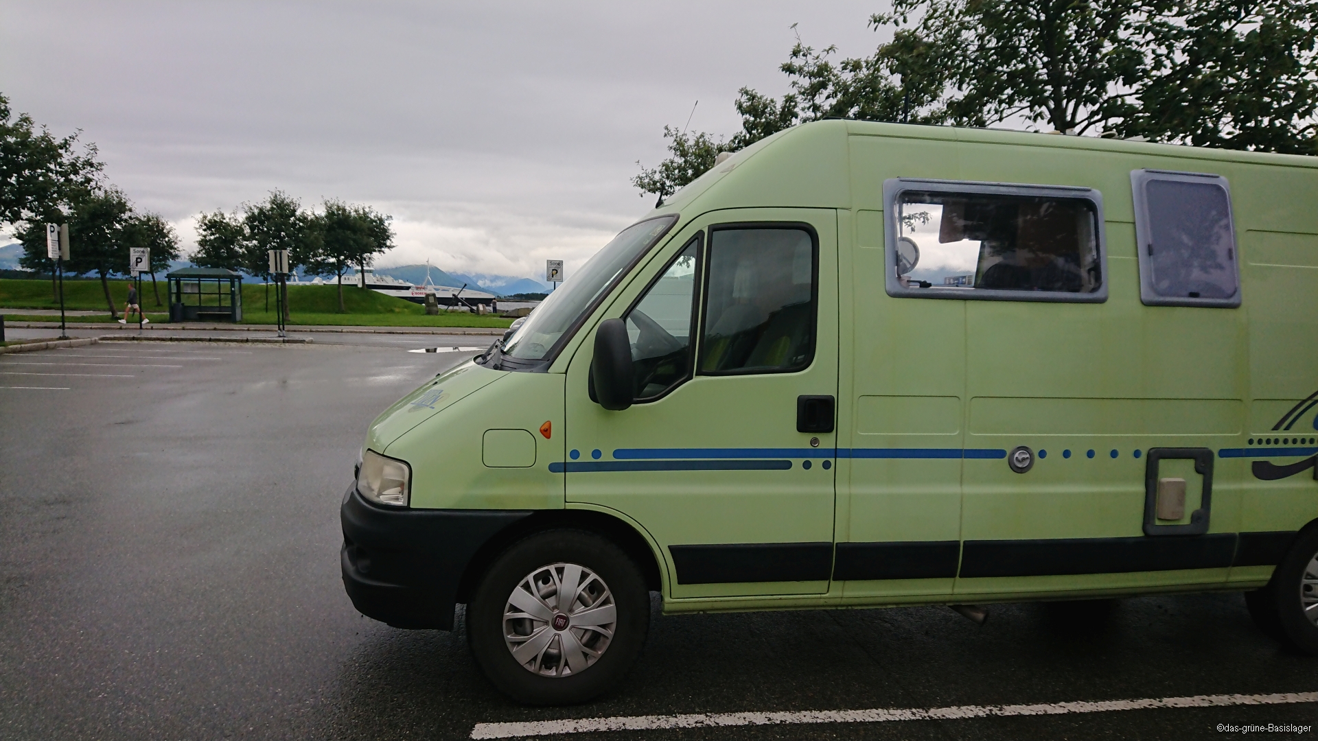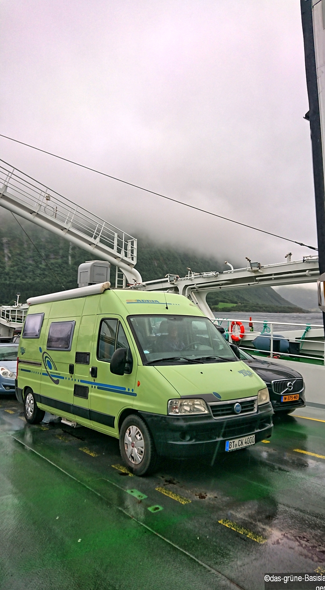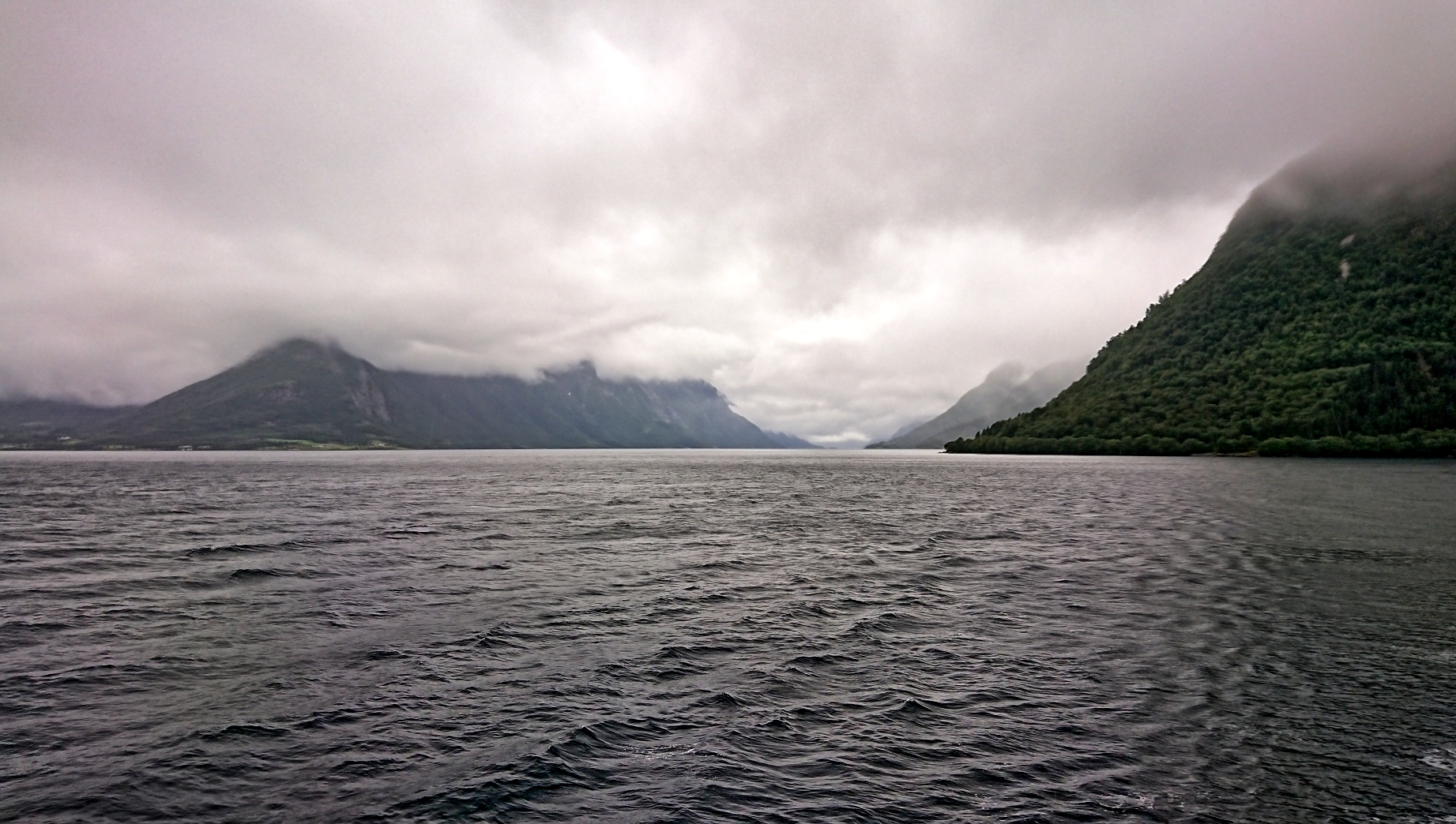 Wir starten – wie nicht anders zu erwarten – unsere Fahrt gen Norden im Regen. Der begleitet uns, mal stärker, mal nachlassend, quasi den ganzen Tag über. Die Fahrt geht immer der E39 entlang. Dabei wird die Straße durch mehrere Abschnitte unterbrochen, für die wir mit der Fähre übersetzen müssen.